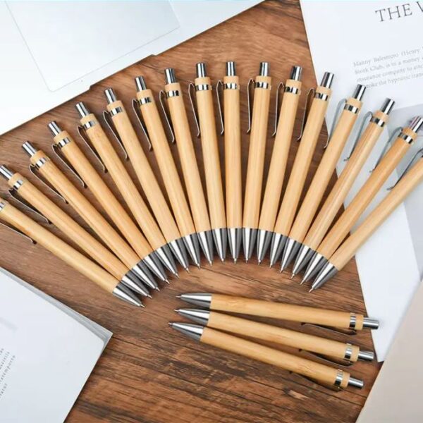 Unsere nachhaltigen Bambus-Kugelschreiber vereinen natürliche Optik, hochwertige Verarbeitung und umweltfreundliche Materialien. Der Schaft besteht aus echtem Bambus – einem schnell nachwachsenden Rohstoff, der ressourcenschonend verarbeitet wird.