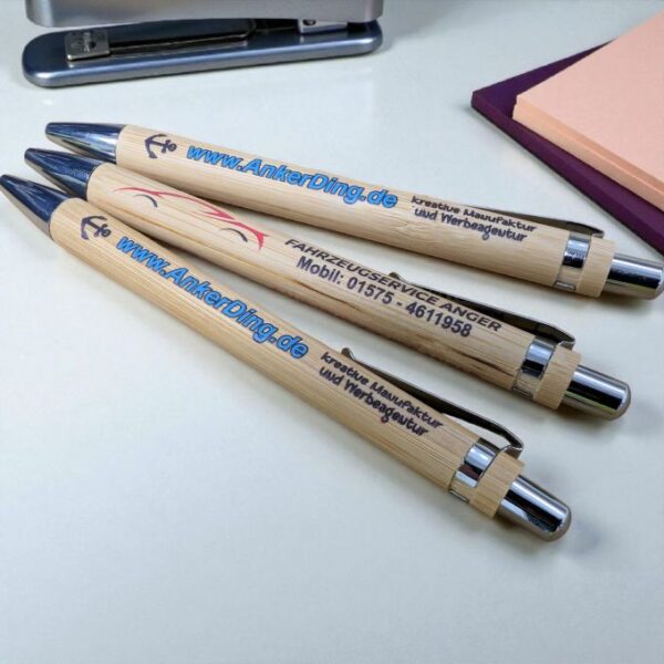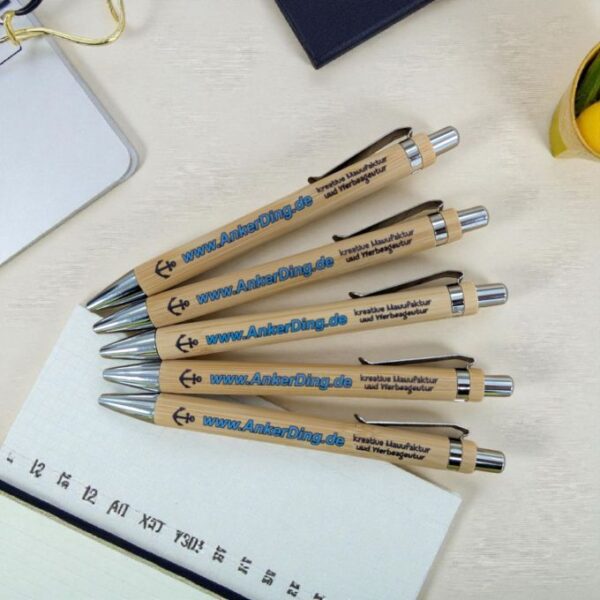 Ob als Werbegeschenk, für Firmen-Events, Schulen, Vereine oder als persönliches Geschenk – dieser Bambus-Kugelschreiber ist die nachhaltige Alternative zu herkömmlichen Kunststoffstiften.